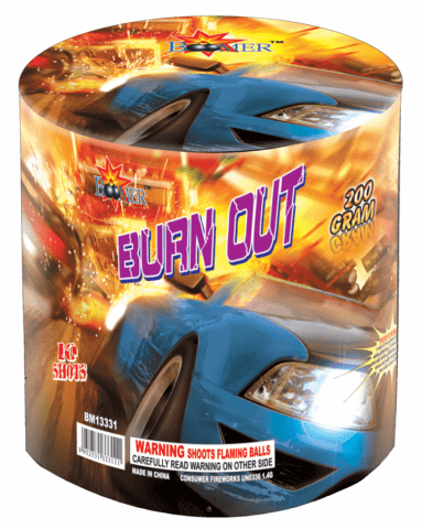 Be sure to take a close look at this impressive 10 shot 200 gram cake from our Boomer line. This banger comes packed 12/1 with lots of performance for your dollar. Burnout features nice mixture of red and green palm tree, purple palm tree with white glitter and finalizes with more palms with silver chrysanthemum. Amazingly vibrant colors throughout, sure to please.