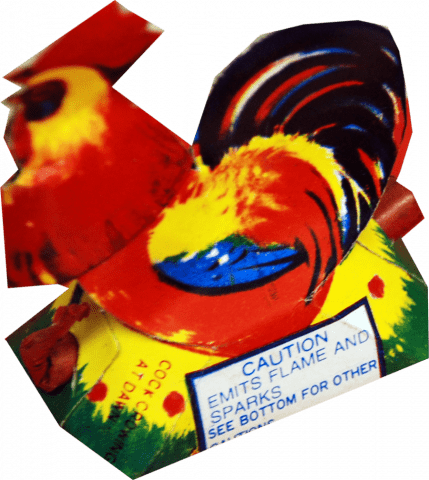 The name says it all. This crazy chicken emits showers of multi-colored sparks and finishes with some of the loudest whistles you have ever heard out of an item of this size. A great selling and very inexpensive item.