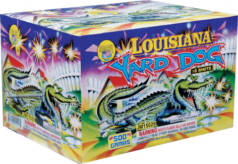 This 16 shot 500 gram cake is tested and approved by the Cajuns of Louisiana. These red and green color tips with the crackling wave effects will surprise even the faint of heart. “Leave this dog on a leash when you shoot it”.