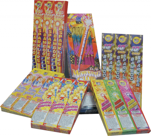 Long burning flitter sparkler that burns with many colors with a torch-like effect.